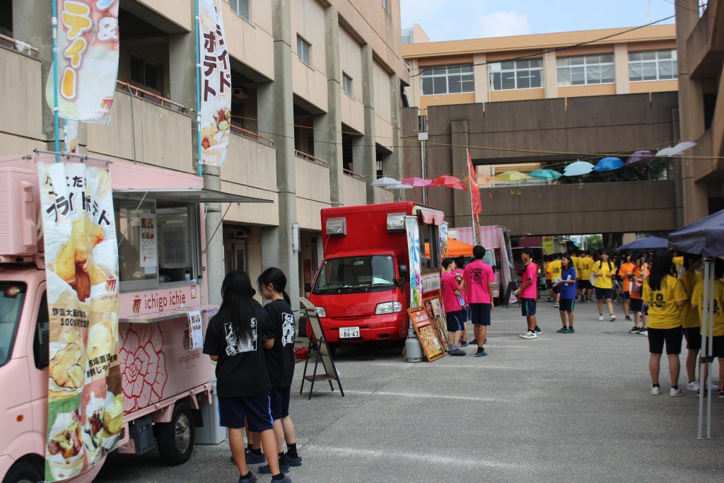 お知らせ 文化祭 第2日 2025年9月17日 文化祭2日目は、教室発表、有志発表、部活動発表、委員会発表などが行われています。 キッチンカーも昨年より多く来ていただき、賑わっています。 保健委員会では、防災について学びの場を設け、起震車体験も行われています。