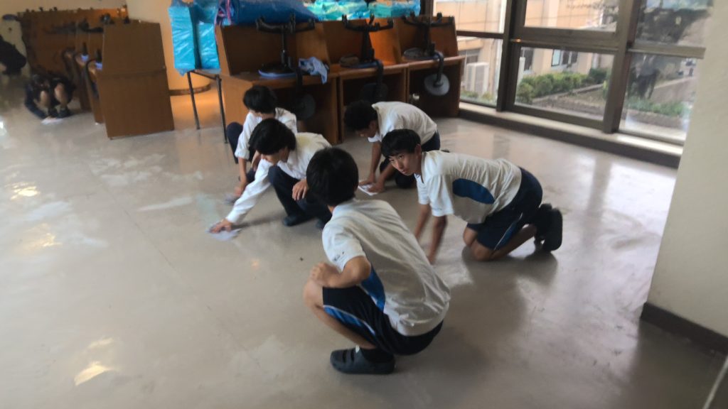 校内美化活動としてワックスがけ、大掃除を実施しました。
