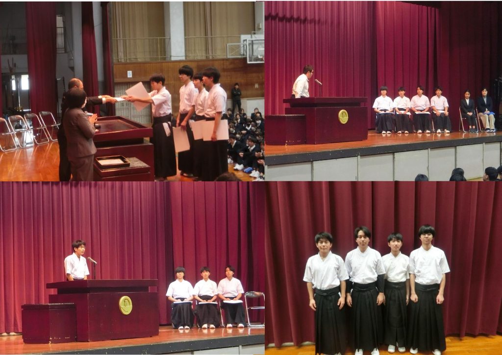 本日、授業後、今週末に東海大会を控えている弓道部の壮行会を行いました。校長先生、生徒会長からの激励の後に、弓道部代表生徒が東海大会に向けて力強い誓いの言葉を話しました。