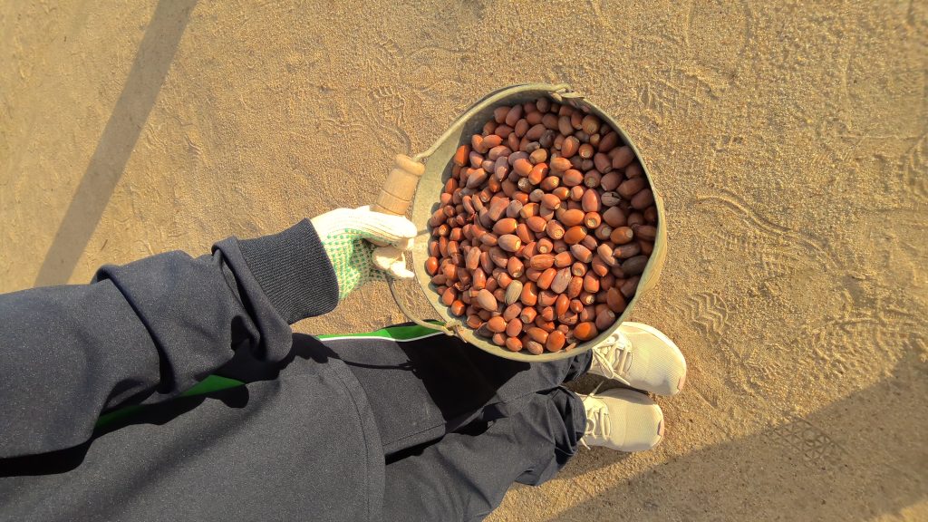 清掃と並行してどんぐり集めも実施しました。集まったどんぐりは岡崎東公園へ寄付したいと計画しています。受け取ってもらえますように!